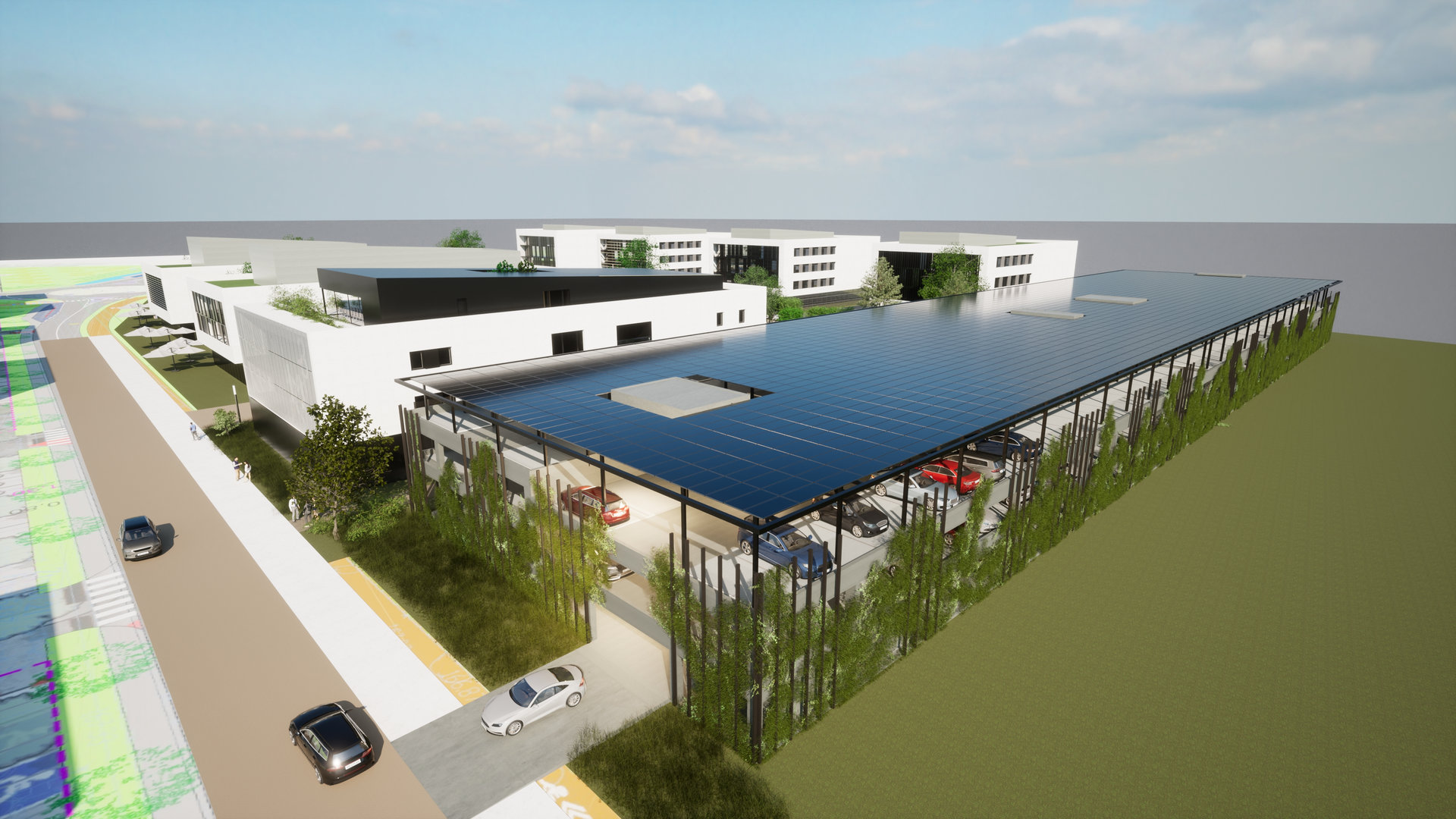 Ce complexe immobilier intégrera des cellules commerciales destinées à des activités tertiaires (restaurant, crèche, salle de fitness..). Un parking silo de 445 places est prévu. Des voies piétonnes et des pistes cyclables seront aménagées, avec une connexion au réseau menant au centre-ville.